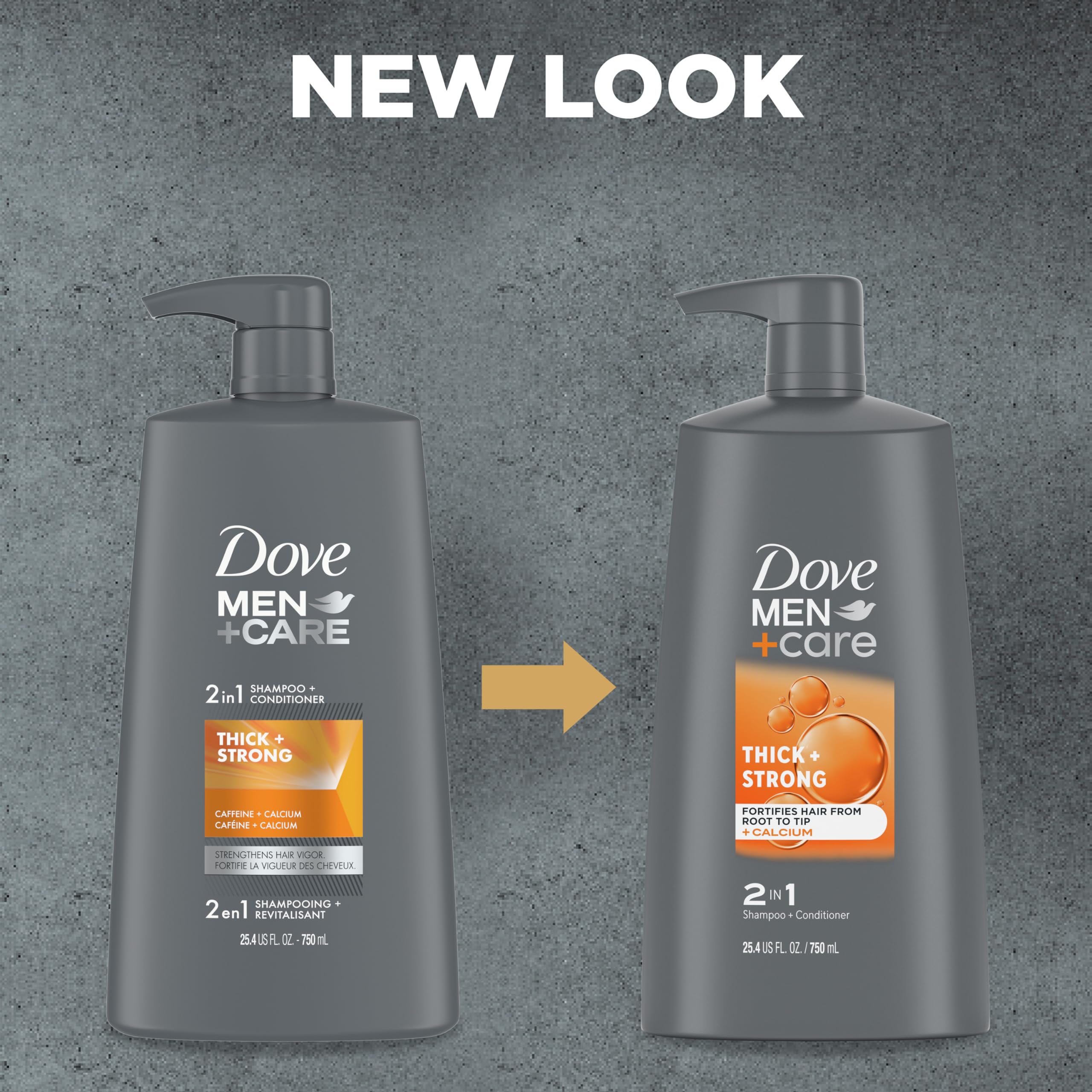 DOVE MEN+ CARE 2-in-1 Shampoo + Conditioner Thick + Strong 4 count for Fortifying Hair from Root to Tip, with Calcium, 25.4 oz—