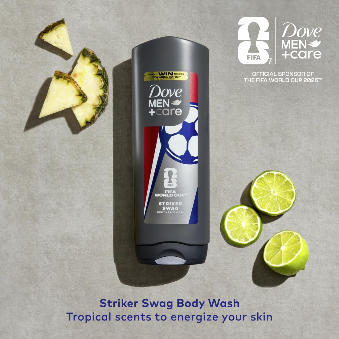 - Chance to Win FIFA World Cup 2026 Tickets: As an Official Sponsor of the FIFA World Cup 2026, Dove Men+Care offers opportunities to scan the QR code for a chance to win FIFA World Cup 2026 tickets.